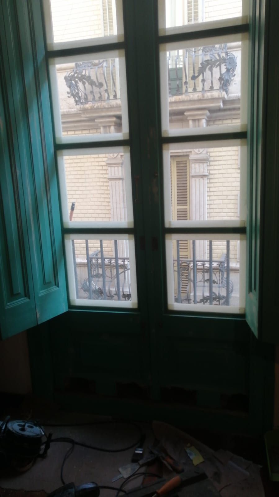 Pintura y acabado final: Una vez restauradas la madera y los herrajes, se procedió al paso final: la aplicación de los mejores productos actuales. Se seleccionaron pinturas de alta calidad, formuladas para resistir los rayos UV, la humedad y la contaminación, garantizando un acabado impecable y duradero. El color elegido se ajustó a la paleta original del edificio, devolviendo a las balconeras su aspecto majestuoso y elegante.