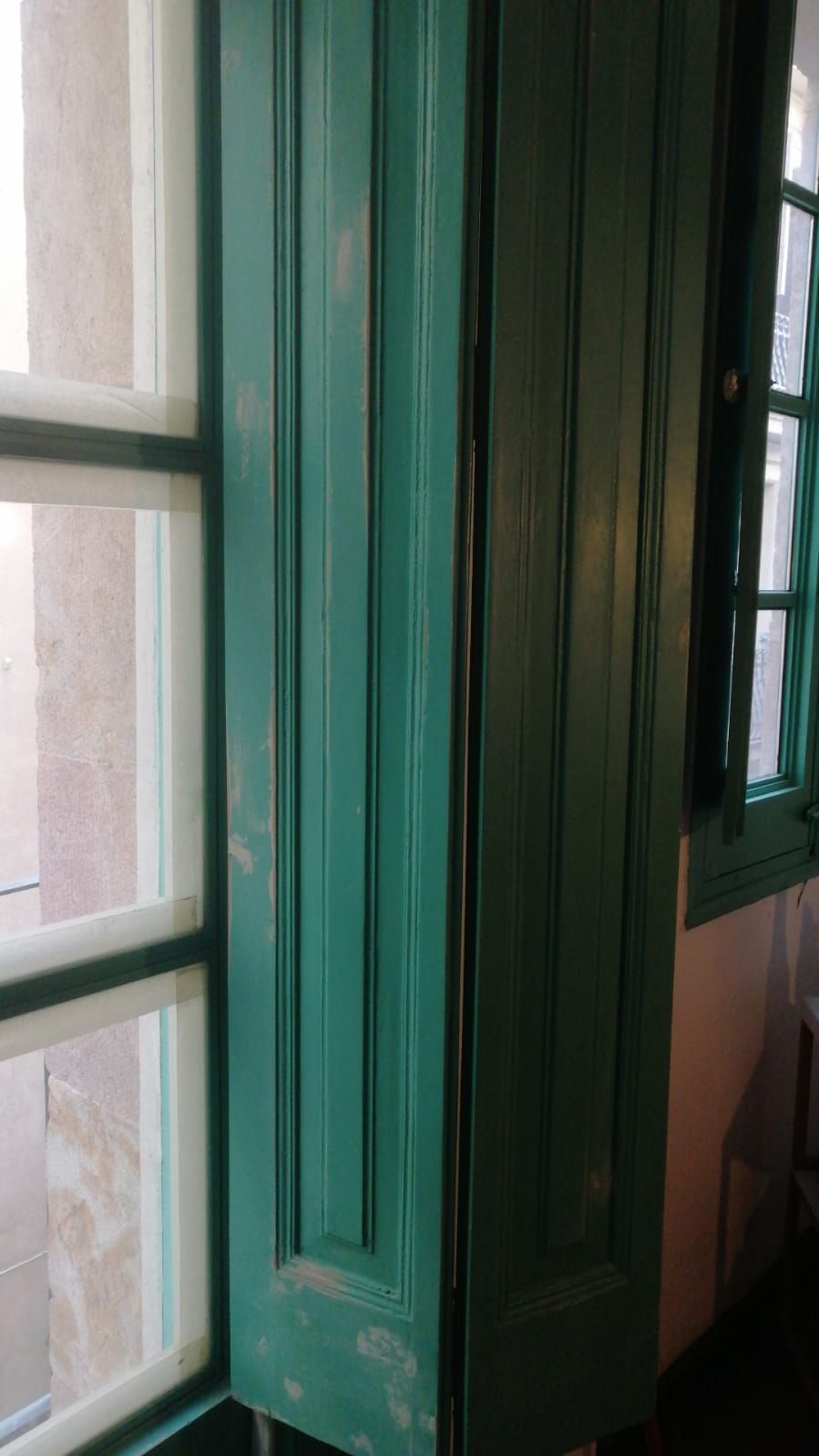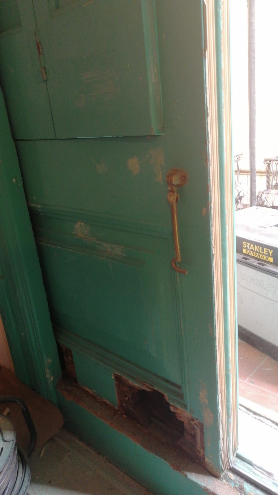 Restauración de los herrajes: Los herrajes originales, con más de un siglo de historia, fueron desmontados y tratados con sumo cuidado. Se eliminaron capas de óxido y pintura antigua, revelando la belleza y la robustez del hierro forjado. Tras un minucioso trabajo de limpieza y pulido, se les aplicó un tratamiento protector y una capa de pintura especializada para metales, devolviéndoles su funcionalidad y su lustre original.